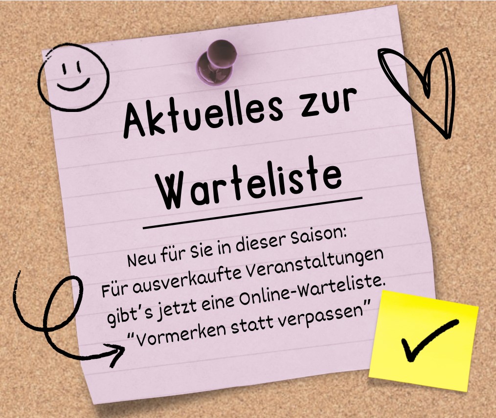 Ab sofort bieten wir für besonders gefragte Veranstaltungen eine neue Servicefunktion an: die Online-Warteliste.