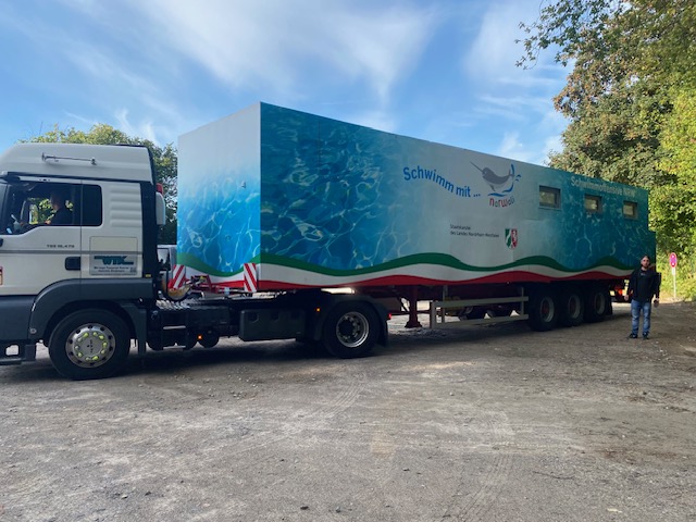 Ein Truck, als mobiler Schwimmcontainer umgebaut, kommt 2026 in Dortmund zum Einsatz.